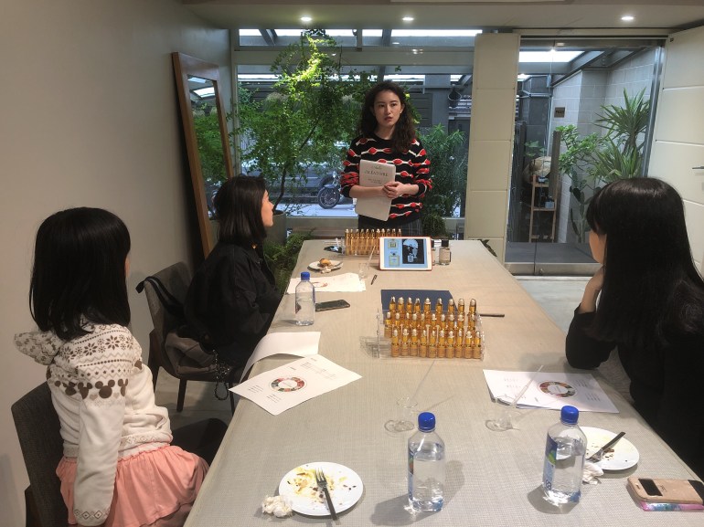 巴黎香水學院的安薛佛老師,現場有超過30種法式精油,老師將會引導你/妳找到屬於自己個性的香味。