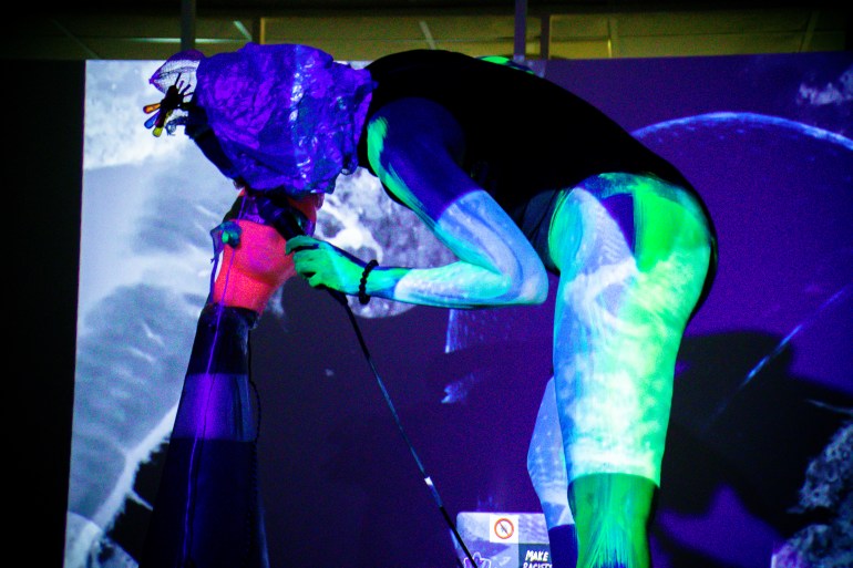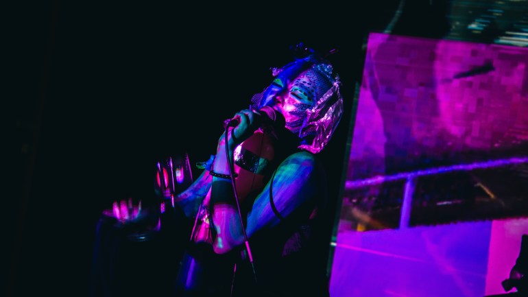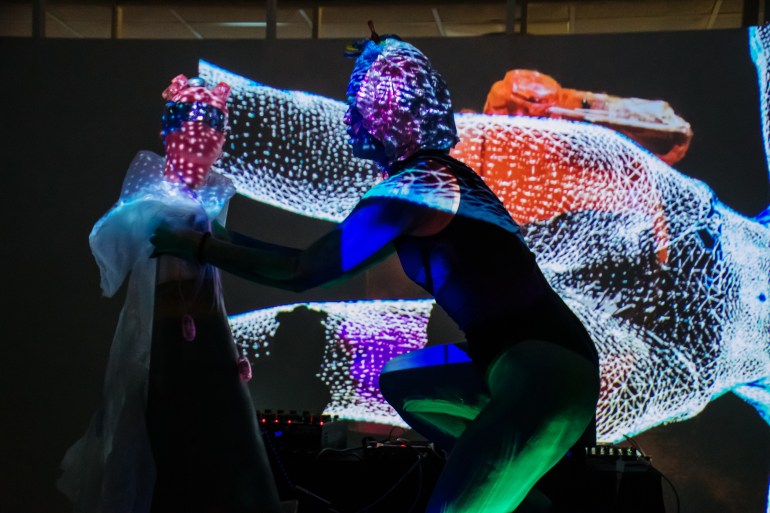 Mika Mitopia與聲音藝術家Betty Apple-鄭宜蘋, 視覺藝術家 Ludol 合作,以後人類角色形象在 複眼時代-第五屆機動眼國際動態媒體藝術節【開幕暨表演單元發表】 演出。